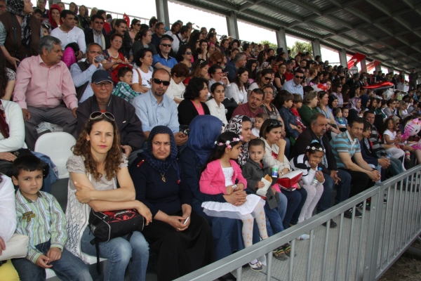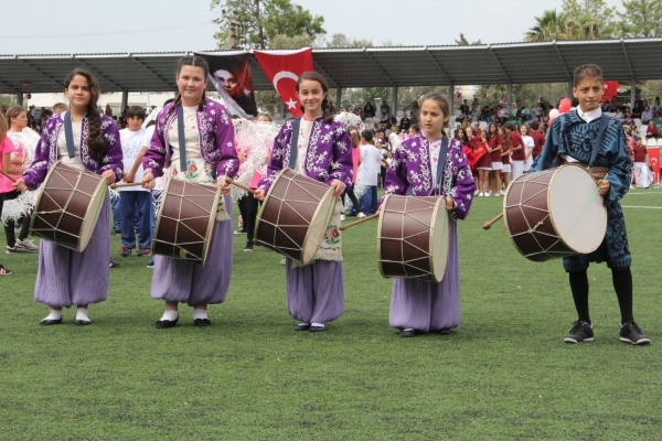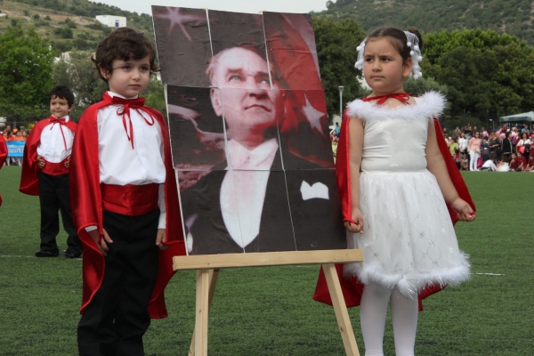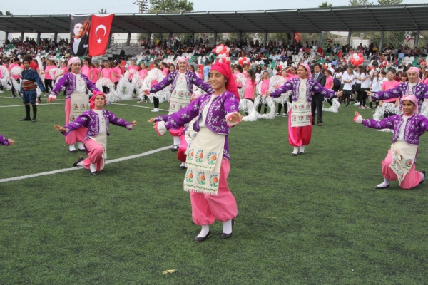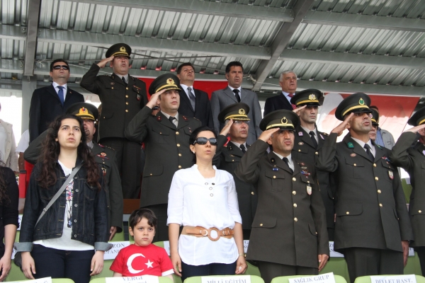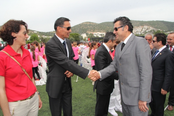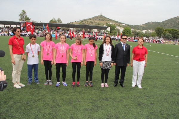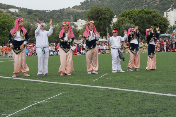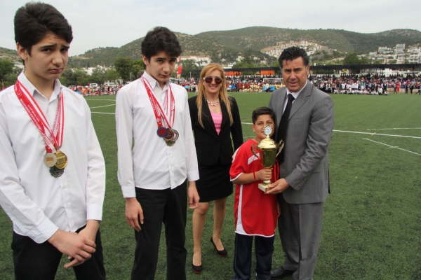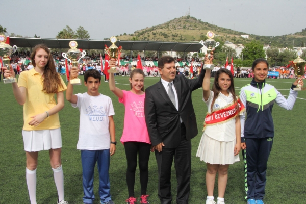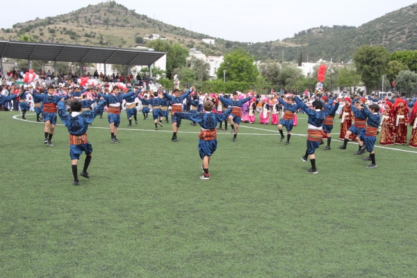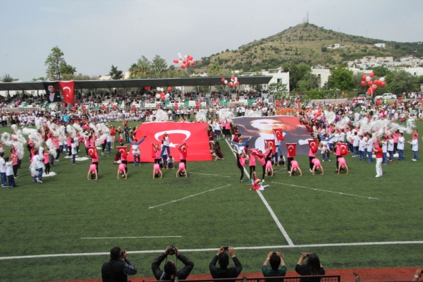 Stattaki törenler Bodrum Kaymakamı Dr. Mehmet Gödekmerdan, Bodrum Belediye Başkanı Mehmet Kocadon ve Bodrum Garnizon Komutanı Ahmet Şevki Ulugün’ün tüm stadı dolaşıp öğrencilerin ve halkın 23 Nisan Ulusal Egemenlik ve Çocuk Bayramı’nı kutlamasıyla başladı. İstiklal Marşı’nın okunmasından sonra günün anlam ve önemini anlatan bir konuşmalardan sonra öğrencilerin şiir okumalarından sonra ulusal ve il düzeyinde dereceye giren öğrencilere ödülleri verildi. Öğrencilerinin hazırladıkları gösteriler ilgiyle izlenirken özellikle anasınıfı öğrencisi miniklerin dansları ayakta alkışlandı.