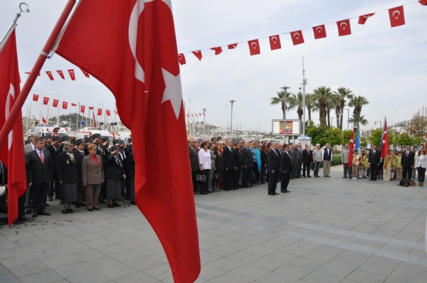 23 Nisan Ulusal Egemenlik ve Çocuk Bayramı kutlamaları Atatürk Heykeli’ne çelenk sunumu ile başladı. Bodrum Kaymakamı Dr. Mehmet Gödekmerdan, Bodrum Belediye Başkan Yardımcısı İsmail Altındağ, Bodrum İlçe Milli Eğitim Müdür Vekili Emin Geçin, Bodrum Muharip Gaziler Derneği, siyasi parti temsilcileri, sivil toplum örgütleri, vatandaşlar ve öğrencilerin katıldığı programda Bodrum İlçe Milli Eğitim Müdürlüğü ve diğer çelenklerin konulması, saygı duruşu ve İstiklal Marşı’nın okunmasının ardından katılımcılar Bodrum Şehir Stadı’na geçtiler.