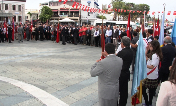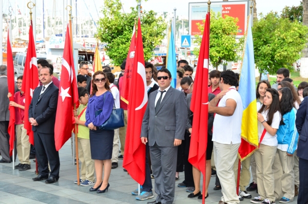 Bodrum’da düzenlenen anma töreni de, saygı duruşunda bulunulması ve İstiklal Marşı’nın okunmasının ardından çelenk koyma töreni ile son buldu.