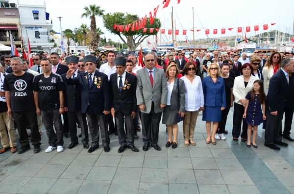 Törene; Bodrum Kaymakamı Dr. Mehmet Gödekmerdan, Bodrum Belediye Başkan Vekili Abdülmecit Poyraz, İlçe Emniyet Müdürü Can Candaş, İlçe Jandarma Komutan Vekili Yarbay Erol Ürküt, Gençlik ve Spor İlçe Müdür Vekili Fatih Uzunlulu’nun yanı sıra izinde olan Bodrum Belediye Başkanı Mehmet Kocadon, CHP Bodrum İlçe Başkanı Recai Seymen, CHP’li Bodrum Belediye Meclis Üyeleri ve partililerle birlikte törene katıldı. Törene ayrıca çeşitli sivil toplum örgütü üyeleri, okul öğretmenleri ve öğrenciler ile vatandaşlar da eşlik etti.