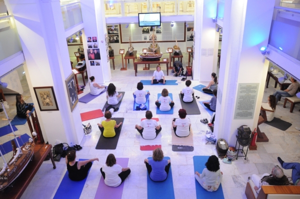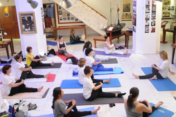 18-24 Mayıs Dünya Müzeler Haftası nedeniyle düzenlenen etkinlikler kapsamında Bodrum Belediyesi ve BODTO’nun da katkılarıyla Bodrum Deniz Müzesi’nde yoga dersi verildi. Türkiye’de bir ilke imza attıklarını ifade eden Müze Müdürü Sema Sagat, yoga derslerine müzede süreklilik kazandırmak istediklerini söyledi.