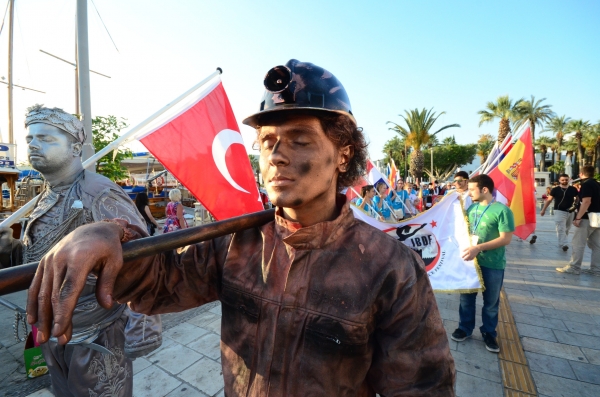 Bodrum Belediye Meydanı’ndan başlayarak Kumbahçe Meydanı’na kadar süren kortej yürüyüşüne vatandaşlar yanı sıra ilçeye tatile gelen yerli ve yabancı turistler de büyük ilgi gösterdi. Soma Faciası’na dikkat çekmek amacıyla kortejin en önünde yürüyen, elinde çapa ve gaz lambası olan madenci figürü ise izleyenlerden büyük alkış aldı.