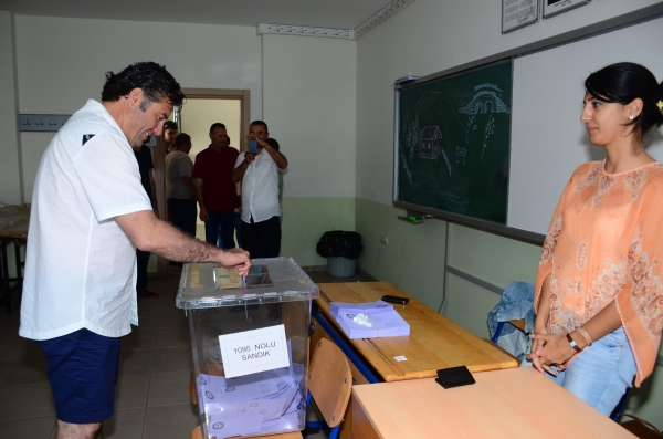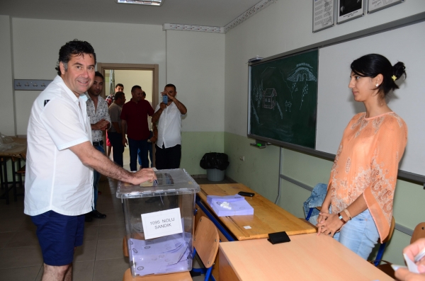 Bodrum Belediye Başkanı Mehmet Kocadon iptal edilen Gümbet Mahallesi Muhtarlık seçimlerinde oy kullandı.