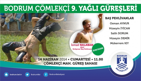 Bodrum Belediyesi’nin himayesinde bu sene 9. kez gerçekleşecek olan Bodrum Çömlekçi Yağlı Güreşleri, 14 Haziran 2014 Cumartesi günü yapılacak.