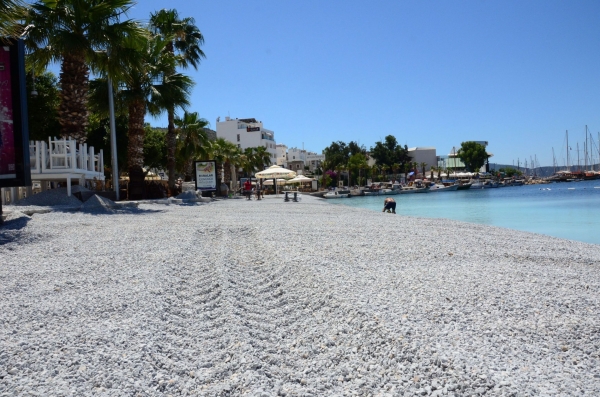 Yaz aylarında yerli ve yabancı turistlerin akın ettiği Kumbahçe Plajı’nda Bodrum Belediyesi tarafından sahil düzenleme çalışmaları yapıldı.