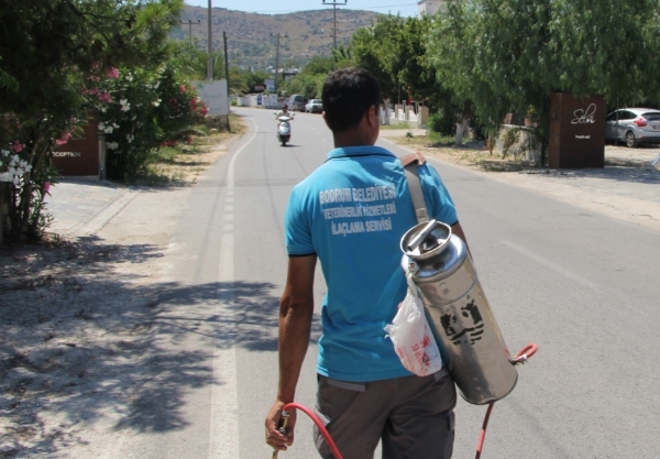 Artan yaz sıcaklarıyla birlikte Bodrum Belediye ekipleri tarafından her türlü zararlı haşere ve virüse karşı önlem alınıyor. Yarımada genelinde süren çalışmalarda kritik bölgelerde ilaçlama çalışmaları yapılıyor.