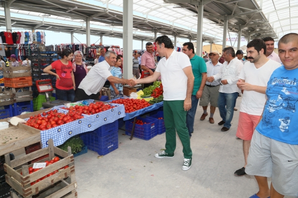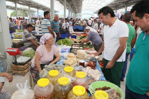 Bodrum Belediye Başkanı Mehmet Kocadon, incelemelerde bulunmak üzere gittiği Mumcular’daki Karaova Pazar Yeri’nde, pazar esnafını da ziyaret etti.
