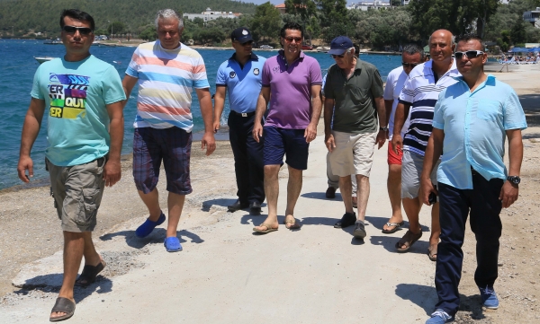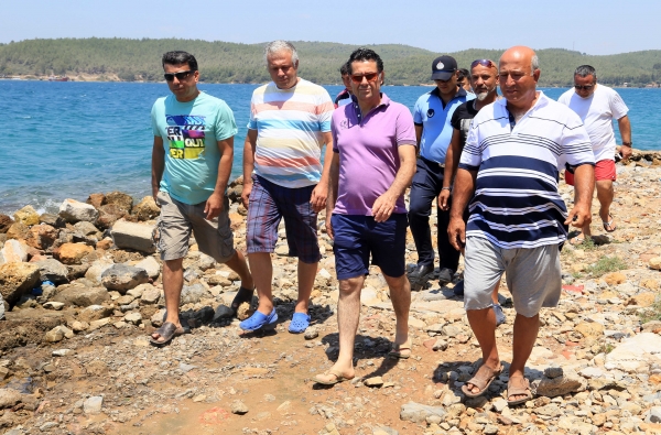Bodrum Belediye Başkanı Mehmet Kocadon, Güvercinlik Mahallesi sahil şeridinde incelemelerde bulundu. Muhtar Gereme'den bölgede yaşanan sorunlar hakkında bilgi alan Başkan, esnafla da sohbet etti.
