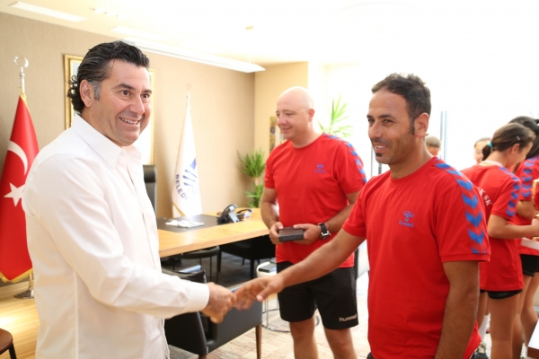 Yalıkavak Spor Kulübü Küçük Bayanlar Hentbol Takımı, Alanya’dan Türkiye ikinciliği kupasıyla döndükleri Bodrum’da, Başkan Mehmet Kocadon'u makamında ziyaret ederek mutluluklarını paylaştı.
