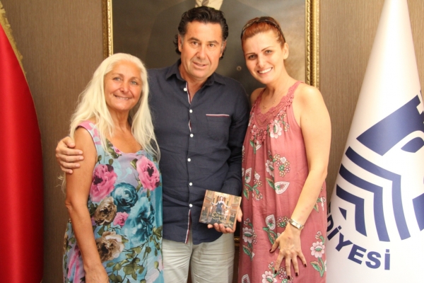 Şişli Belediyesi Koro Şefi, kanun ve ses sanatçısı Özge Doğru, merhum Cem Karaca'nın eşi şair ve bestekar İklim Karaca ile birlikte Bodrum Belediye Başkanı Mehmet Kocadon'u makamında ziyaret etti.