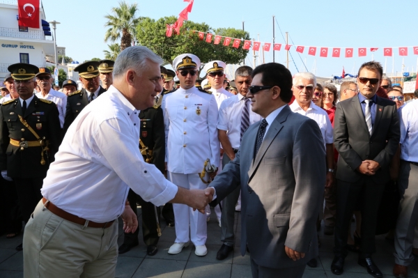 Törenin ardından Bodrum Kaymakamı Dr. Mehmet Gödekmerdan ile birlikte Bodrum Belediye Başkan Yardımcısı İsmail Altındağ, Garnizon Komutanı Albay Göksel Oral ve Cumhuriyet Başsavcısı Vekili Yıldırım Zöhre Bodrum Kaymakamlık Makamı’na geçerek tebrikleri kabul etti.