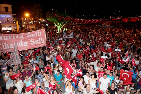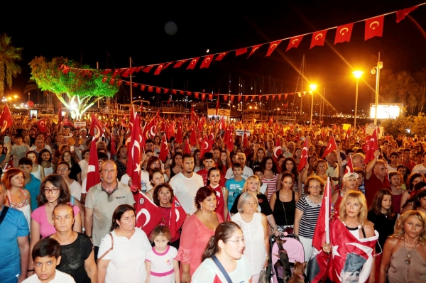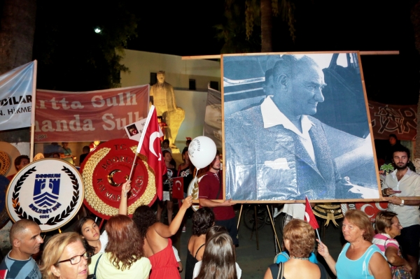 Bodrum Milta Marina'dan başlayarak Neyzen Tefvik Caddesi boyunca Bodrum Belediye Meydanı'na kadar süren yürüyüş, saygı duruşunda bulunulması ve İstiklal Marşının okunmasıyla son buldu.