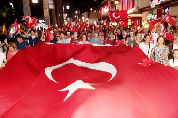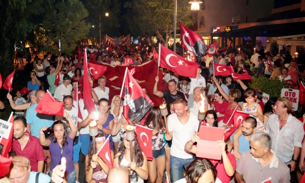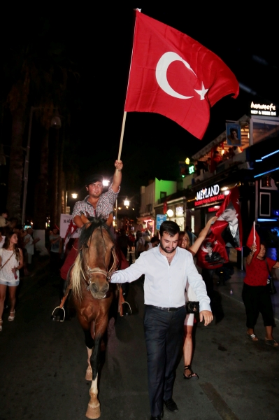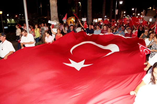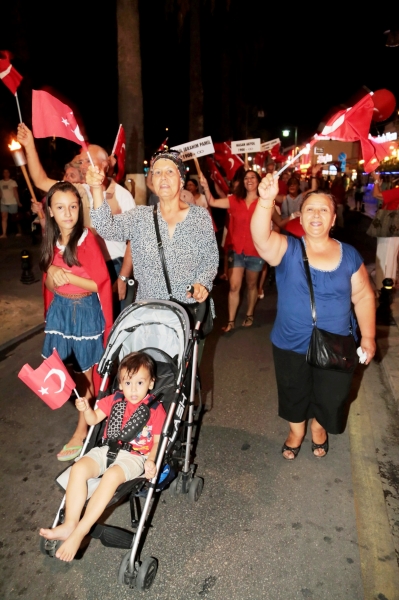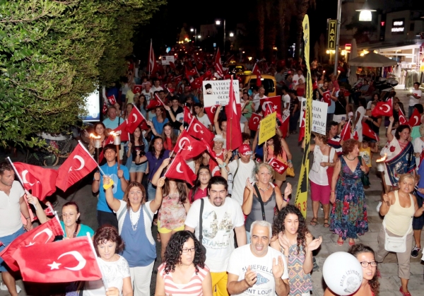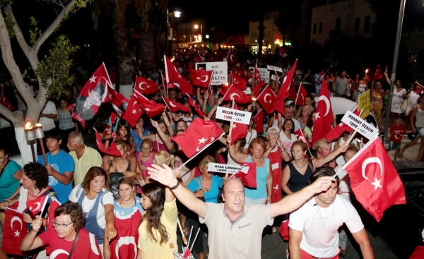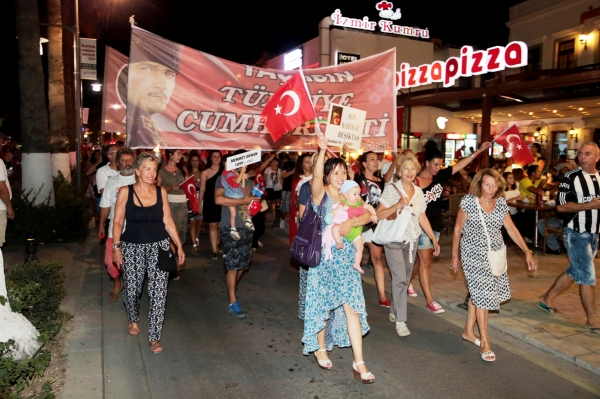 10. Yıl Marşı eşliğinde yürüyüş yapan yaklaşık 5 bin kişiye caddede yer alan restoran ve eğlence mekanlarındaki vatandaşlar da bayrak ve meşalelerle destek verdi. Fener alayına ayrıca Bodrum Muharip Gaziler Derneği, Bodrum Beşiktaşlılar Derneği, Arama Kurtarma Derneği (AKUT), Ortakent Yahşi Gençlik ve Spor Kulübü, siyasi partilerin temsilcileri ve Bodrum Belediyesi Meclis Üyeleri de katıldı.
