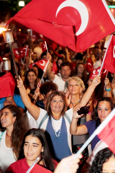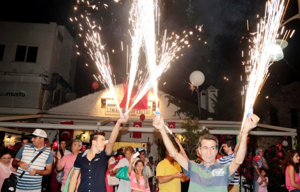 Bodrum'da 30 Ağustos Zafer Bayramı nedeniyle düzenlenen fener alayı, ellerinde Türk ve Atatürk bayraklı yaklaşık 5 bin vatandaşın katılımıyla renkli görüntülere sahne oldu.