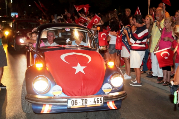30 Ağustos Zafer Bayramı nedeniyle Bodrum’da akşam saatlerinde düzenlenen fener alayına yaklaşık 5 bin kişi katıldı. Neyzen Tevfik Caddesi boyunca ellerinde meşaleler, Atatürk posterleri ve Türk bayraklarıyla fener alayına katılan vatandaşlar coşku dolu anlar yaşattı. Bodrum Vosvos Kulübü üyeleri de fener alayına bayraklarla süsledikleri arabalarıyla katıldı. Araçların üzerine çıkan kulüp üyeleri, ellerinde tuttukları bayraklarla fener alayına renk kattı.