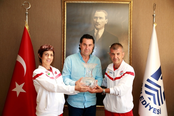 Bodrum’da çalışmalarını sürdüren İzmir Atletizim Spor Kulübü’nün (İZAK) şampiyon sporcuları Yaşar Anter ve Fatma Anter, Bodrum Belediye Başkanı Mehmet Kocadon’u makamında ziyaret etti. Sporcular ziyarette Başkan Kocadon ile Bodrum’a ve Türkiye’ye başarılı çalışmalarıyla kazandırdıkları gurur ve mutluluklarını paylaştı.