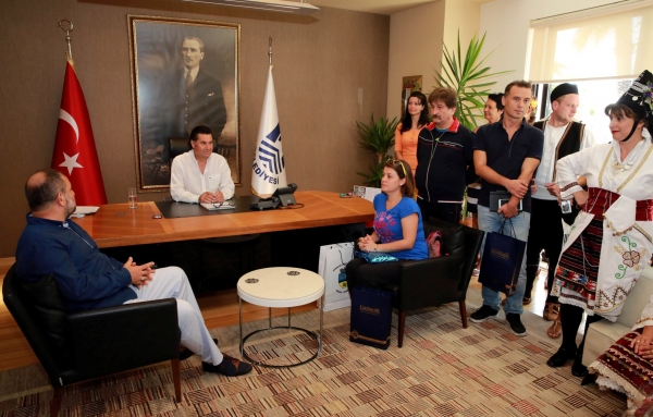 Ziyaretten duyduğu memnuniyetini ifade eden Başkan Kocadon, "Hem Bodrum'a gelip bu özel festivalimize katıldığınız için, hem de bana yapmış olduğunuz bu hoş ziyaretiniz için öncelikle hepinize çok teşekkür ediyorum ve hoş geldiniz diyorum. Özellikle ülkelerinizin örf, adet ve kültürlerini burada yansıtıyor olmanızdan dolayı son derece memnunum. Ben, bu güzel görüntülerin dünya barışına, birlik ve beraberliğine katkı sağlayacağına inanan bir belediye başkanıyım. Bu rengarenk giysiler içinde oynayacağınız halk danslarıyla bizlere büyük mutluluk katacaksınız. Bu yıl dokuzuncusu düzenlenen festivalimizin farklı mahallelerde yapılması da, daha fazla insana ulaşması açısından gerçekten yararlı olacaktır. Festivale sunduğunuz katkı nedeniyle ben de sizlere çok teşekkür ediyorum ve tekrardan Bodrumumuza hoş geldiniz diyorum." dedi.