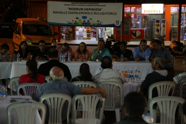 Mahalle sakinlerinin ilgi gösterdiği toplantıya Bodrum Belediyesi Basın-Yayın ve Halkla İlişkiler Müdürü Ummahan Yurt başta olmak üzere Fen İşleri Müdürü Cafer Onur Çandar, Emlak ve İstimlak Müdürü Hamit Kocaman, Destek Hizmetleri Müdürü Serdar Kaya, Hukuk İşleri Müdürü Naciye Berrak Anter Ballı, Temizlik İşleri Müdürü Memduh Bölük, Çevre Koruma Müdürü Engin Doğan, Park ve Bahçe Müdürlüğü Sorumlusu Zehra Ertürk, İmar ve Şehircilik Müdürlüğü Sorumlusu Hüseyin Sanlı katıldı.