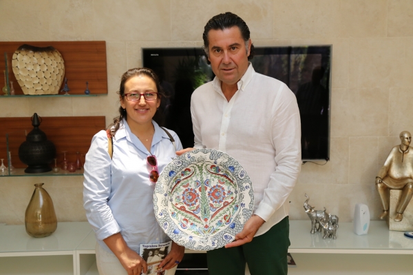 Seramik ve çini sanatçısı Nihal Üner, Bodrum Belediye Başkanı Mehmet Kocadon'u makamında ziyaret etti.