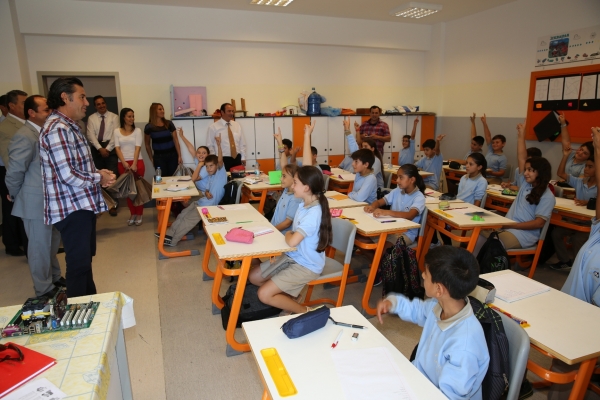Bodrum Belediye Başkanı Mehmet Kocadon, yeni eğitim-öğretim yılında ders başı yapan öğrencileri ziyaret etti. Her fırsatta eğitimin küçük yaşlarda alınması gerektiğine vurgu yapan Başkan Kocadon, bu nedenle en büyük desteği okullara verdiğinin altını çizdi.