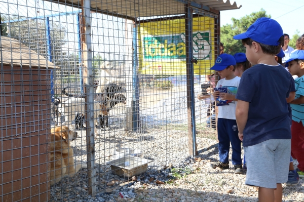 Hayvan dostu minik öğrenciler, Bodrum Belediyesi Geçici Hayvan Bakımevi'ndeki hayvanları ziyaret etti.