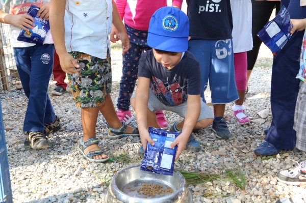 Yapılan ziyarette kedi ve köpekleri yakından görme şansını yakalayan 4-5 yaş grubundaki on dokuz öğrenci, yanlarında getirdikleri kuru mamaları kedi ve köpeklere yedirerek yeni bir deneyim kazandı.
