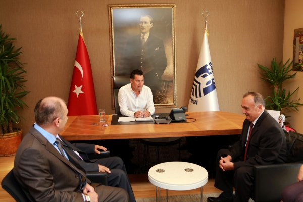 Muğla Vergi Dairesi Başkanı Hüseyin Bayar, Bodrum Belediye Başkanı Mehmet Kocadon'u makamında ziyaret etti.