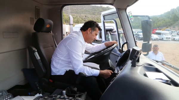 Bodrum Belediye Başkanı Mehmet Kocadon, Bodrum 1. Bölgede faaliyet gösteren temizlik şirketinin kullandığı araçların tanıtımına katıldı. Kızılağaç Otobüs Bekleme Sahası'nda yapılan tanıtımda, Başkan Kocadon, araçlar hakkında şirket yetkililerinden bilgi aldı. Daha önce kamyon kullandığını belirten Başkan, yol temizleme kamyonlarından bir tanesinin direksiyonuna geçerek aracı çalıştırdı.