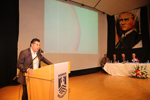 Toplam beş buçuk saat süren toplantıda ilk sözü Muğla Su ve Kanalizasyon İdaresi (MUSKİ) Genel Müdürü Bаki Ülgen aldı. Ülgen, Muğla il genelinde kapanan belde belediyelerinin ardından yeni hizmet faaliyet alanlarının oluştuğunu, bu nedenle öncelikle bu noktalarda MUSKİ olarak yapılanma çalışmalarını başlattıklarını belirtti. Ülgen yeni yasa ile birlikte Muski'ye tüm Muğla genelinden yaklaşık 1 milyar 8 yüz milyon TL borç devrolduğunu belirterek, buna rağmen çok hızlı bir şekilde yatırım planlamalarına başlandığını ifade etti. Bodrum'da da su ve kanalizasyon işleri kapsamında yetkilerin MUSKİ'ye geçmesiyle birlikte bu bölgede de faaliyette bulunduklarını açıklayan Genel Müdür, Bodrum'da öncelikle bir fizibilite çalışması yaptıklarını kaydetti. Bu çalışma kapsamında yarımada genelinde mevcut arıtma tesislerinin durumunun incelendiğini ve ihtiyaçların belirlendiğini belirtti. Bodrum genelinde ihtiyacın yaklaşık onda birini karşılayan arıtma tesisin bulunduğunu söyleyen Ülgen yatırım planlamasının yapıldığını ve ayrıca Bodrum'un Turgutreis Mahallesi'ndeki 18 dönümlük parselin, arıtma tesisi kurulması için Bodrum Belediyesi tarafından MUSKİ'ye tahsis edildiğini de sözlerine ekledi. Bodrum genelinde bu güne kadar yapılan çalışmaların maliyetinin ise 5 milyon lirayı geçtiğini kaydetti.