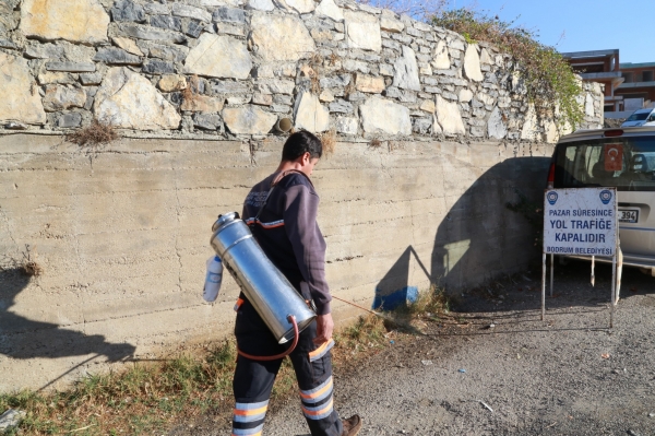 Bodrum Belediyesi Çevre Koruma ve Kontrol Müdürlüğü Veteriner Hizmetleri İlaçlama Servisi tarafından, Bodrum genelinde yer alan pazar yerlerinin bulunduğu bölgelerde, ilaçlama çalışmaları devam ediyor. Pazar yerlerinde hijyeni sağlamak amacıyla bu bölgelerde oluşabilecek karasineklere karşı "Agida" adlı ilaçla müdahale eden ekipler, çalışmalarını düzenli olarak her hafta sürdürüyor.