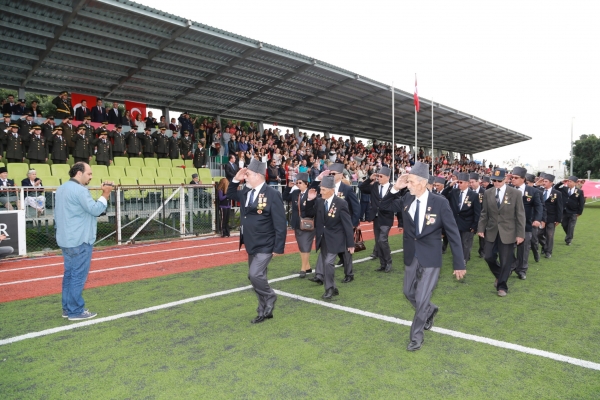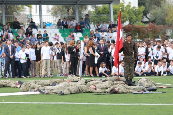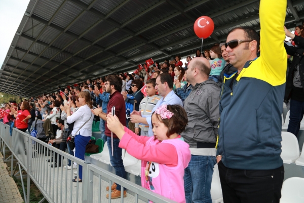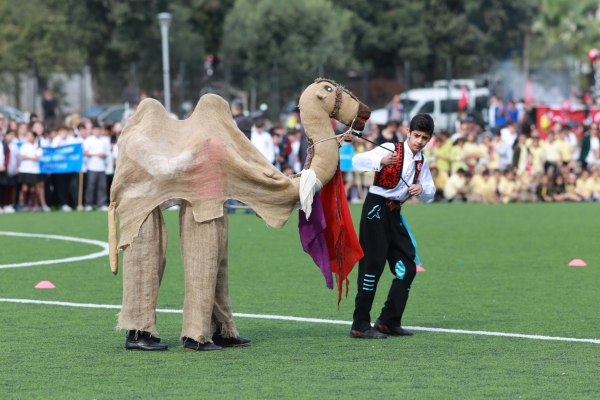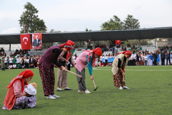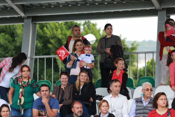 Tören, öğrenciler tarafından okunan şiirlerin ardından minik öğrencilerin folklor gösterisi ile devam etti. Öğrenciler tarafından hazırlanan Atatürk İlkelerinin anlatıldığı gösteri de vatandaşlardan büyük alkış aldı. Stattaki tören, gösterilerin ardından gerçekleştirilen geçit töreni ile son buldu.