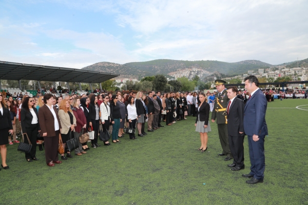 Törenler 29 Ekim günü, Bodrum Kaymakamı Dr. Mehmet Gödekmerdan'ın kaymakamlık makamında tebrikleri kabul etmesiyle başladı. Tebriklerin kabulünün ardından Bodrum Şehir Stadı’nda düzenlenen çeşitli etkinliklerle kutlamalar devam etti. Tören, Bodrum Kaymakamı Dr. Mehmet Gödekmerdan, Bodrum Belediye Başkanı Mehmet Kocadon, Garnizon Komutanı Albay Atilla Göksel Oral'ın vatandaşların ve öğrencilerin bayramlarını kutlamasıyla başladı. Saygı duruşunda bulunulması ve İstiklal Marşı'nın okunmasıyla devam eden törende günün anlam ve önemini belirten konuşmayı Bodrum Kaymakamı Dr. Mehmet Gödekmerdan yaptı.