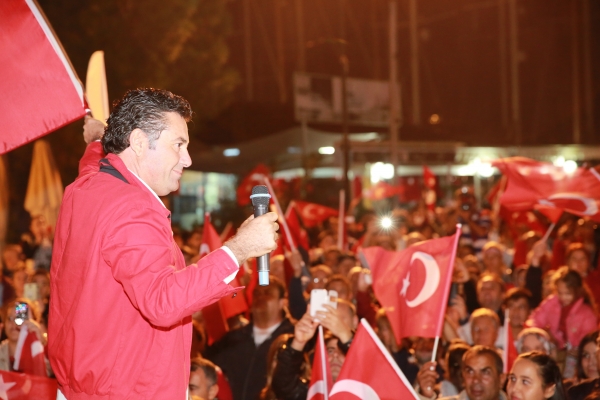 Tüm vatandaşların Cumhuriyet Bayramını kutlayan Bodrum Belediye Başkanı Mehmet Kocadon, "Bodrum Yarımadası’nın medeni insanları, Bodrum'un değerli laik insanları, Bodrum'un değerli Cumhuriyet insanları, Atamızın gözündeki ışığın yolunda yürüyen halkım… Bizim yolumuz; medeniyet yolu, aydınlık yolu, ilim - irfan yolu. Bu güzel bayram; benim, senin, onun bayramı değil bizim bayramımızdır. Bu bayram birey olma bayramı, bu bayram vatan toprağına sahip olma bayramı, bu bayram seçme seçilme hakkına sahip olma bayramı, bu bayram eşit olma bayramı. Bu bayram; bizim, Laik Türkiye Cumhuriyeti’nin bayramı. Bu güzel bayramda bizleri yalnız bırakmayan siz değerli Bodrum halkına şükranlarımı sunarken, 18 tane madenci kardeşimize içinizdeki güzel pozitif enerjinizi yollayarak en kısa zamanda sevindirici haberleri almak dileği ile bayramınızı kutluyor, sevgi ve saygılarımı yolluyorum. Sizin başkanınız olmaktan da huzur ve gurur duyuyorum." dedi.