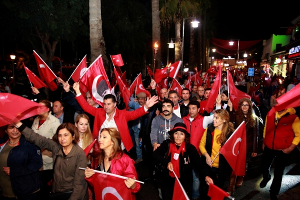 Cumhuriyetin kuruluşunun 91. yıl dönümünde Bodrum'da düzenlenen fener alayına binlerce vatandaş katıldı.