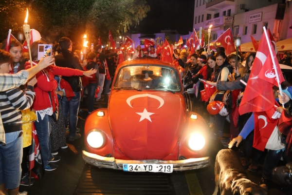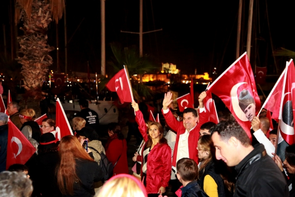 Cumhuriyetimizin 91. yılında, Bodrum Neyzen Tevfik Caddesi sonunda toplanan binlerce Bodrumlu, ellerinde meşaleler ve Türk bayraklarıyla Bodrum Belediye Meydanı’na yürüdü. Saat 19.00’da başlayan yürüyüş öncesinde Bodrum Motosiklet Kulübü üyesi motosikletliler, Bodrum Bisiklet Kulübü üyesi bisikletliler ve Bodrum Vosvos Kulübü üyeleri araçlarıyla hareket etti. Araçların hemen ardından bando eşliğinde yürüyüşe geçen Bodrumluların arasında Bodrum Belediye Başkanı Mehmet Kocadon da vardı. Başkan Kocadon, fener alayına eşi Hülya Kocadon ve kızı Zeynep Kocadon ile birlikte katıldı. Binlerce Bodrumlu marşlar ve sloganlar eşliğinde Bodrum Belediye Meydanı’na, oradan da İskele Meydanı’na geçti. Karaman'da yaşanan maden kazası nedeniyle düzenlenmesi planlanan konser ise iptal edildi.
