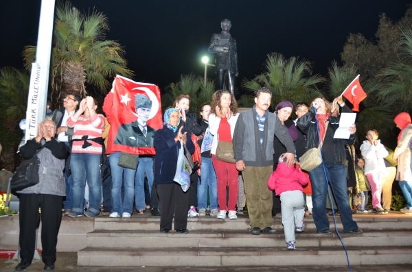Etkinlikte Bodrum Belediyesi Meclis Üyesi Funda Akçalı, "Cumhuriyetimizin kurucusu Ulu Önder Mustafa Kemal Atatürk ile silah arkadaşları için, vatan ve demokrasi savunmasında kaybettiğimiz şehitlerimiz için, demokrasi için, laik Cumhuriyet için hep birlikte andımızı okuyalım.'' dedi.