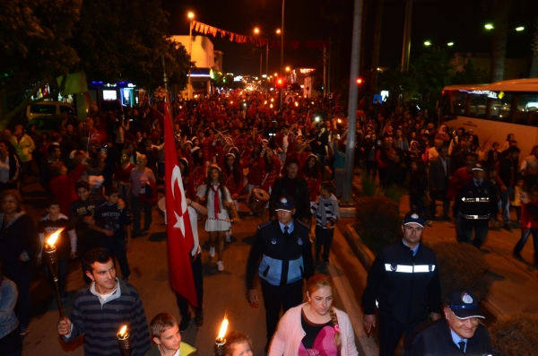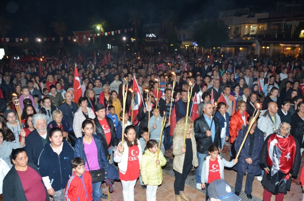 Cumhuriyetimizin kuruluşunun 91. yılında Bodrum genelinde düzenlenen etkinlikler kapsamında Turgutreis Mahallesi Akçaalan Çok Amaçlı Salon önünde toplanan binlerce vatandaş, ellerinde meşaleler ve Türk bayraklarıyla Amiral Turgutreis Ortaokulu Bandosu'nun eşliğinde sloganlar ve marşlar söyleyerek Atatürk Meydanı'na yürüdü. Yürüyüşe binlerce vatandaşın yanı sıra Bodrum Belediyesi Meclis Üyeleri de eşlik etti.