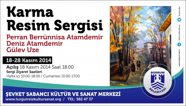 Ortak noktaları resim sanatı olan üç sanatçı, Turgutreis Mahallesi'nde yer alan Bodrum Belediyesi Şevket Sabancı Kültür ve Sanat Merkezinde 18 Kasım günü saat 18.00'daki açılış kokteyli ile eserlerini görücüye çıkaracak. Karma Resim Sergisi, 28 Kasım 2014 tarihine kadar hafta içi 10.00-18.00, Cumartesi günleri ise 10.00-17.00 saatleri arasında ziyaret edilebilecek.