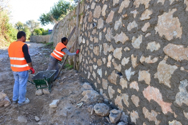 Belediye ekipleri, Ortakent Mahallesi Koca Taş Caddesi üzerinde bulunan Ulu Dere'de, hasara uğramış yığma duvarda toplam 15 metre boyunca, 30 metre kare taş örme çalışması gerçekleştirdi. Ekipler ayrıca Gürece Mahallesi'ndeki Gürece Cami Mezarlığı'nın özel arazi ile sınırları belirleyen duvardaki hasarı gidermek için toplam 60 metrekare taş örme çalışması gerçekleştirdi.