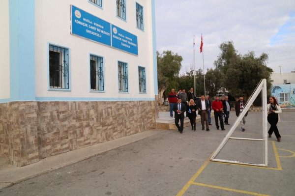 Konacık Cahit Özvezneci İlkokulu ve Ortaokulu'nu ekibiyle birlikte ziyaret eden Bodrum Belediye Başkanı Mehmet Kocadon, okulun ihtiyaçları hakkında okul yetkililerinden bilgi aldı.