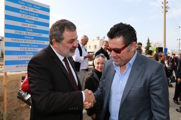 Temel atma töreninde, yerel yöneticiler ve vatandaşlar el arabasından küreklerle aldıkları çimentoyu, yapılacak olan Bodrum Sağlık Vakfı Meslek Kazandırma Atölyeleri'nin temeline attılar.