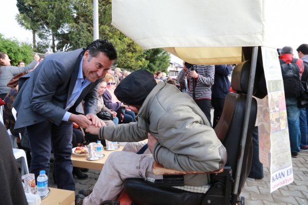 "Değerli Bodrum halkı, özellikle şunu söylemek isterim ki; sevdiğiniz kadar sevilirsiniz ve her şeyin başı da sevgi, inanmak, mücadele etmektir. Yerel yönetimde 15. yılımı doldurdum. Bu 15 yıl içinde birçok kuruluşla çalıştım, birçok dernekle temel attık ve birçoğunu da hayata geçirdik ama can-ı gönülden söylemek isterim ki; karşılıksız sevginin ne demek olduğunu ben onlarla tanıştığım gün öğrendim. Gözlerindeki bakış, gözlerindeki sevginin ne kadar içten bir sevgi olduğunu, onlarla okula gitmeye başladığım zaman gördüm. Onun için hep onların yanında oldum ve olmaya da devam edeceğim. Bu süreç içerisinde de yaptığımız bu güzel çalışmalarda ve eğitimlerde özellikle o yavrularımızın, o kardeşlerimizin artık kendi başlarına yolda yürümeleri beni o kadar mutlu ediyor ki... Bir bakıyorum, dolmuşta tek başına gidiyor artık; bir bakıyorum, futbol maçında tribünde yanıma oturuyor; bir bakıyorum, cep telefonuma mesaj gönderiyor. Kimisi Mehmet amca, kimisi Mehmet ağabey, kimisi de Başkanım diyor. İşte bunların hepsi, değerli eğitmen ve velilerimizin iş birliği içerisinde verdikleri mücadele ile oluyor. Hepsini bir kenara bırakabilirdik ama bugün bakın, artık şiir yazan kardeşimden seramik öğrenen kardeşime kadar bir sürü evlatlarımız oldu ve artık onlar kendi ayaklarının üzerinde durabiliyorlar. Emeklerinin karşılığını almaya başladıkça onların da üretken bireyler olduklarını hep beraber görüyoruz. Onun için bu güzel temel atma töreninde, bu güzel çocuklarımızı bu günlere getiren bütün arkadaşlarıma, emeği geçen herkese, özellikle de eğitmen arkadaşlarıma ve çocuklarını yalnız bırakmayan ve onlara inanan velilerine bir kere daha teşekkür ediyorum. Bu güzel atölyenin hepimize hayırlı olmasını diliyorum."