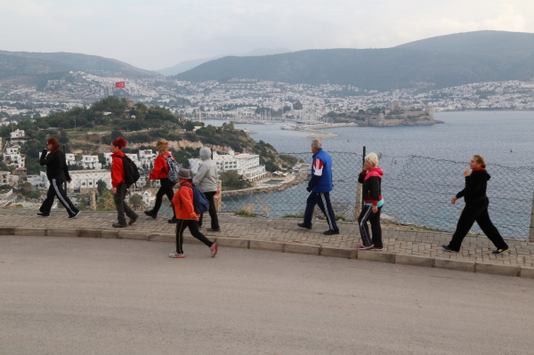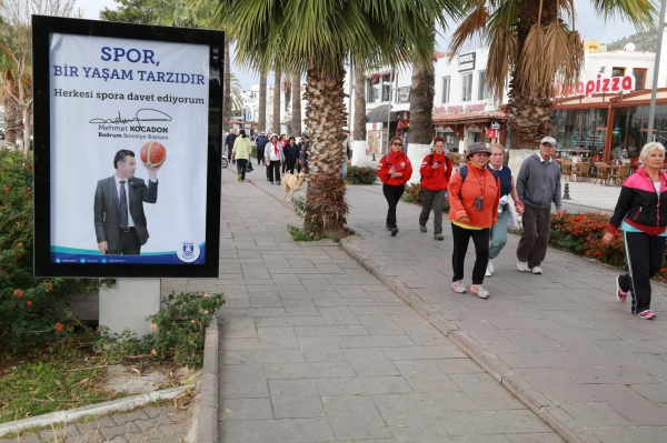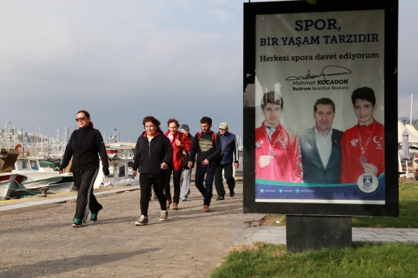 Bodrum Belediyesi Kültür ve Sosyal İşler Müdürlüğünün kış faaliyetlerinde yer alan ve vatandaşların katılımıyla farklı güzergahlarda spor yapılmasının hedeflendiği etkinliğe katılan vatandaşlar, Bodrum Belediye Başkanı Mehmet Kocadon'a da teşekkür etti.