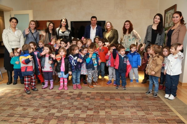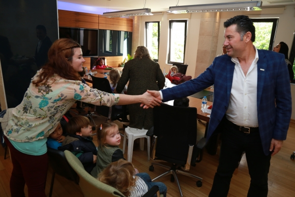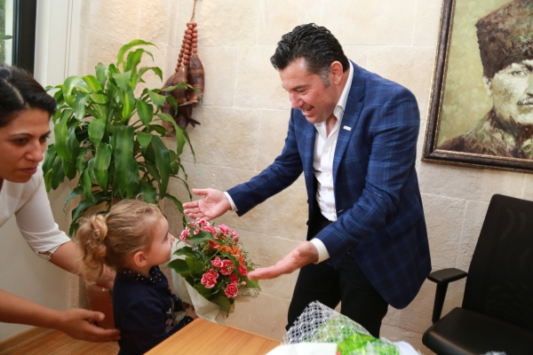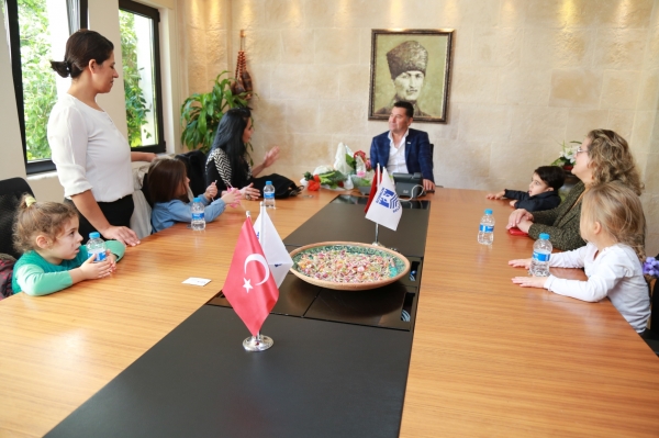 Bodrum Özel Parmak İzi Kreş ve Gündüz Bakım Evi öğrencileri, Bodrum Belediye Başkanı Mehmet Kocadon'u makamında ziyaret etti.