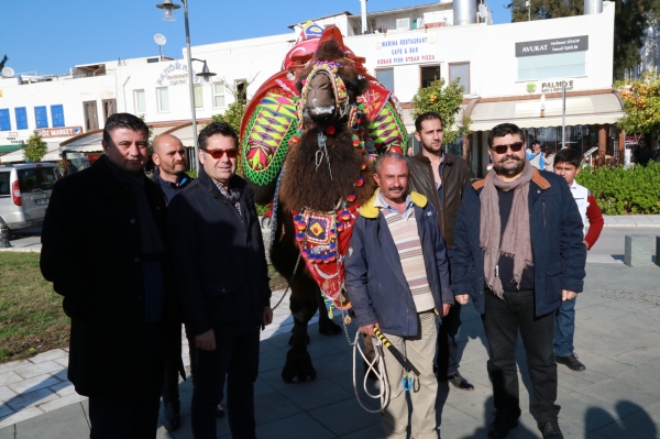 Pazar günü Kızılağaç Deve Güreşi Arenası'nda düzenlenecek olan Bodrum Deve Güreşi Festivali öncesi develer, Bodrum merkezde kortej yürüyüşü yaptı. Korteje Başkan Kocadon da katılarak festivale tüm Bodrum halkını davet etti.