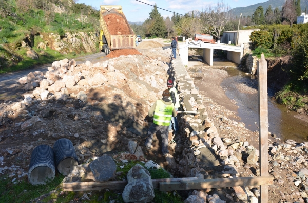 Bodrum Belediyesi Fen İşleri Müdürlüğü ekipleri, yoğun yağışların dere yatakları, dere yatağı girişi, ana ve ara sokaklarda oluşturabileceği hasarları önlemek için Bodrum ilçe genelinde çalışmalarına devam ediyor. Çalışmalar kapsamında Ortakent Mahallesi Koca Taş Caddesi üzerinde bulunan Ulu Dere'de, kış sezonu öncesi dere kenarlarına yapılan duvarlara ek olarak 60 metrekare daha duvar ören ekipler, Tepecik Mahallesi'ndeki okulun bahçesine de 45 metrekare istinat duvarı örme çalışması gerçekleştirdi.