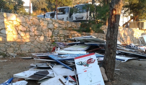 Bodrum Belediyesi Mali Hizmetler Müdürlüğü İktisat İşleri Birimi ekipleri, Bodrum genelinde izinsiz dikilen totem, tabela ve yönlendirme tabelalarını kaldırarak görüntü kirliliğinin de önüne geçiyor.