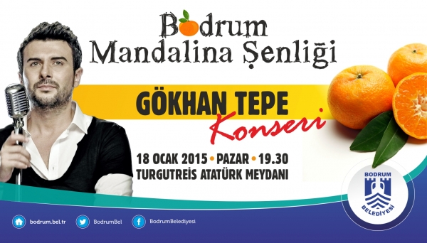 Bodrum Belediyesi tarafından 17 - 18 Ocak 2015 tarihleri arasında iki gün boyunca sürecek olan ‘Bodrum Mandalina Şenliği’nde ünlü şarkıcı Gökhan Tepe de konser verecek.