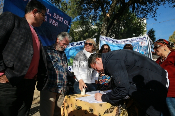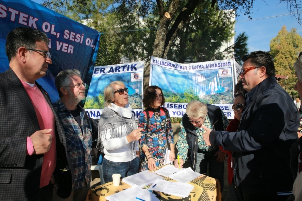 Ortakent Yahşi ve Bitez’de iki gün boyunca stant açan sivil toplum kuruluşları “Kilisebükü bir dünya mirasıdır”, “Destek ol, sesi ol, imza ver”, “Yeter artık! Talana koy yok!” yazılı pankartlar açarak vatandaşlardan Kissebükü Adalıyalı Mevkii’ndeki yapılaşmanın önüne geçebilmek amacıyla imza topladı.
