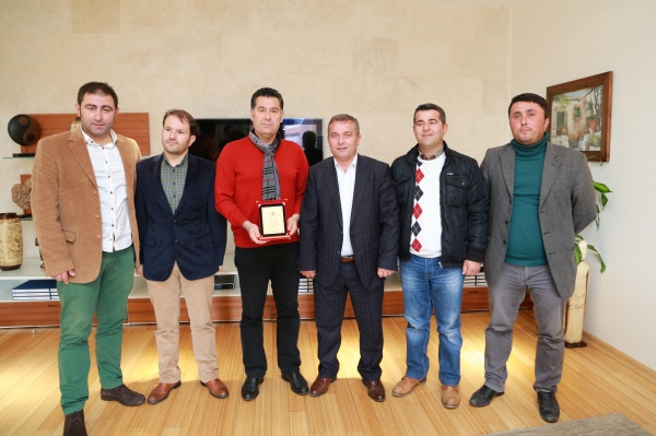 Bodrum Yarımada Karadenizliler Kültür ve Dayanışma Derneği Yönetim Kurulu üyeleri, Bodrum Belediye Başkanı Mehmet Kocadon'a plaket verdi.